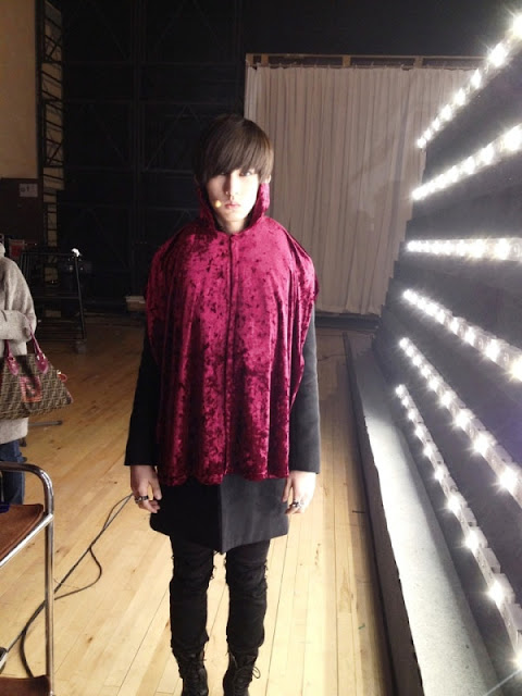 Well,he is none other than U-Kiss' good-looking member Kiseop,the boys performed in Vampire outfits just now,Kiseop managed to snap a photo backstage.