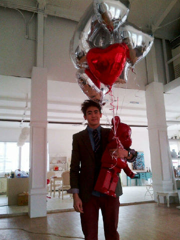 On January 4th, Nichkhun shared a mezmering photo on his Twitter tagged with cute little emoticon "=] ~". In the photo, the prince is on his lovely red suit while holding balloons and stuffed toy. It seems the Nichkhun is waiting for his date?